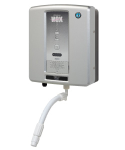 弊社では、食材の洗浄・殺菌にホシザキ株式会社の電解水生成装置「WOX-50WB」を導入致しております。この機器が生成する強酸性電解水は、塩素系薬剤と同等の高い殺菌力を持ちながら、食品に残留しない安全性が特長です。食肉等を「洗ってすすぐだけ」で、カンピロバクター等の有害菌を効果的に除去し、素材そのものの鮮度や風味を損なうことなく、衛生的な状態を保ちます。